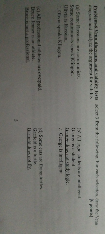 Solved Problem 6 Venn Diagrams And Validity Tests Select