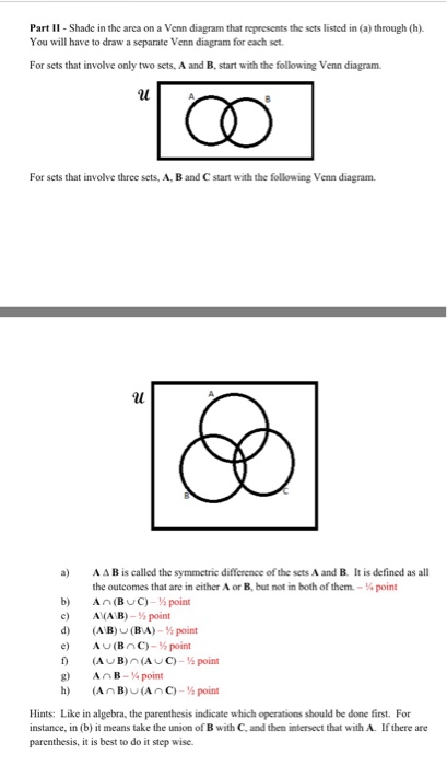 Solved Part Ii Shade In The Area On A Venn Diagram That