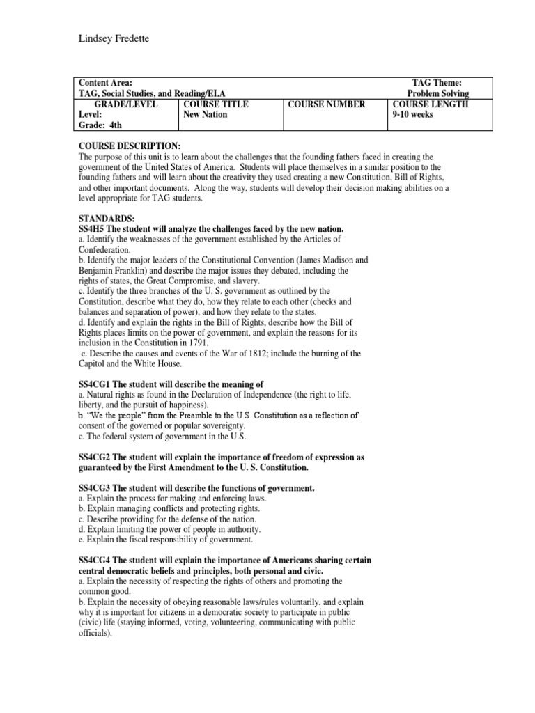 Lindsey Fredette Unit United States Bill Of Rights United