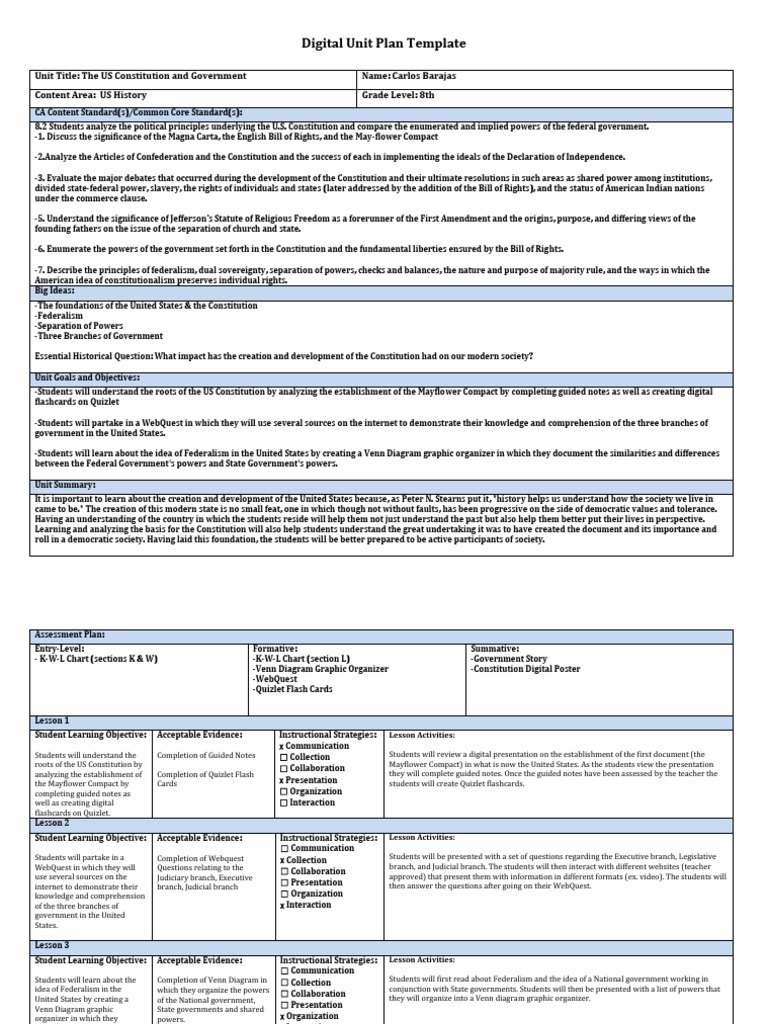 Digital Unit Plan Template United States Bill Of Rights United