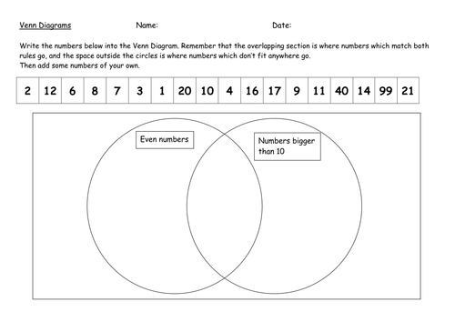 Venn Diagram Sorting Numbers Even More Than Ten Teaching
