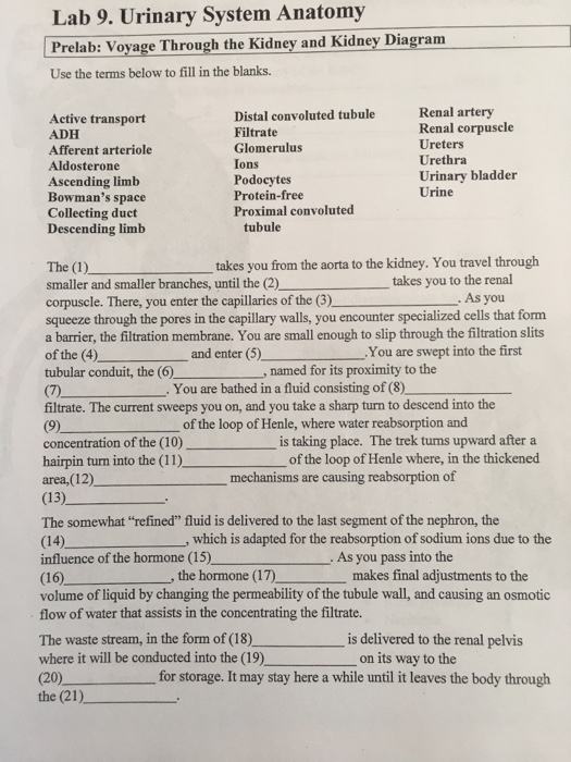 Solved Lab 9 Urinary System Anatomy Prelab Voyage Throu