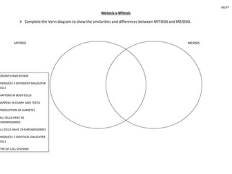 Mitosis Vs Meiosis Venn Diagram Worksheets Teaching Resources Tpt