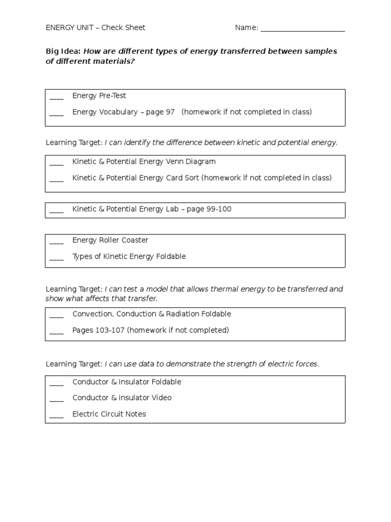 Unit 1 Energy Mrs Sanchez S Website