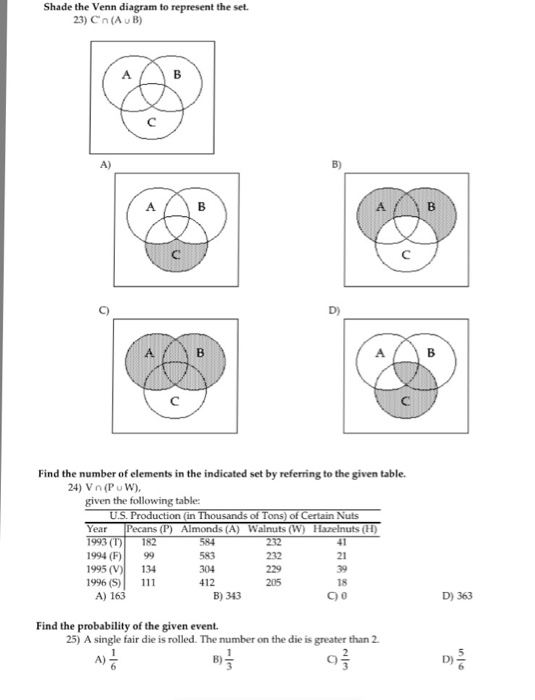 Solved C Intersection A Union B Find The Number Of Elem